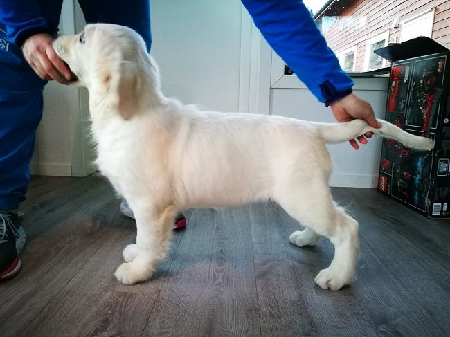 | Vakre, nyyydelige Snø. Er bare så utrolig glad for at jeg valgte henne, for det var ikke enkelt. Alle de 7 jentene i kullet var nemlig svært jevne og vakre, og Snø var nok ikke verken den største eller den kraftigste, men det var noe med utstrålingen hennes... og ikke minst elegansen. Hun er bare så utrolig treningsvillig og glad, hun har en hale som går i hundre. Visst er hun en liten rakker, men hun er samtidig myk, så det er enkelt å få henne til å høre etter. Snø elsker å ligge i fanget i sofaen (så lenge hun er liten), og hun legger seg i fanget til alle som kommer på besøk, hvis de setter seg på gulvet med henne. For ikke snakke om at hun skal opp i ansiktet og vaske alle sammen, hun har bare en helt utrolig herlig personlighet. Eksteriøret hennes er også meget vakkert, hun har en super overlinje, utrolig flotte bevegelser, og er velvinklet. Hodet og uttrykket er svært vakkert. Vakre Snø blir boende på Dyngeland i minst 1-2 år, og kanskje lengre, for det er virkelig noe spesielt med denne frøkna her. |